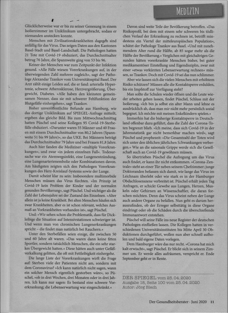 Jörg Blech betrachtet das Thema im „Spiegel“ aus medizinischer Sicht.